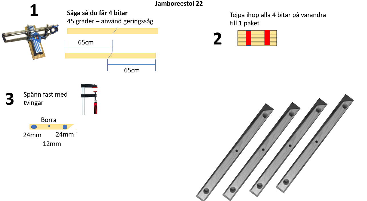- Läkt 65cm(eller lite längre): 65cm x 4 = 260cm